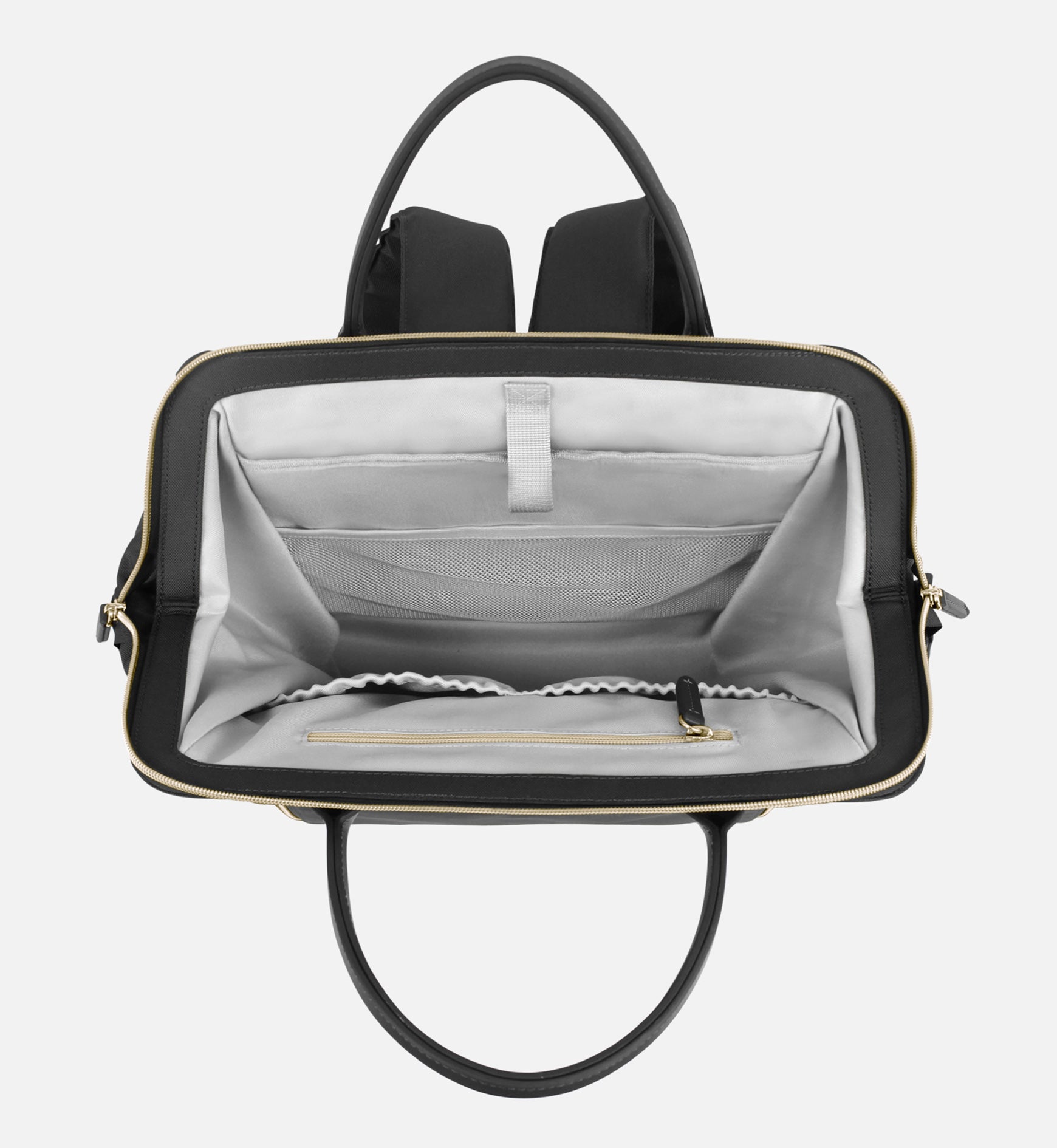 * Elastic, mesh, and zipper pockets in interior